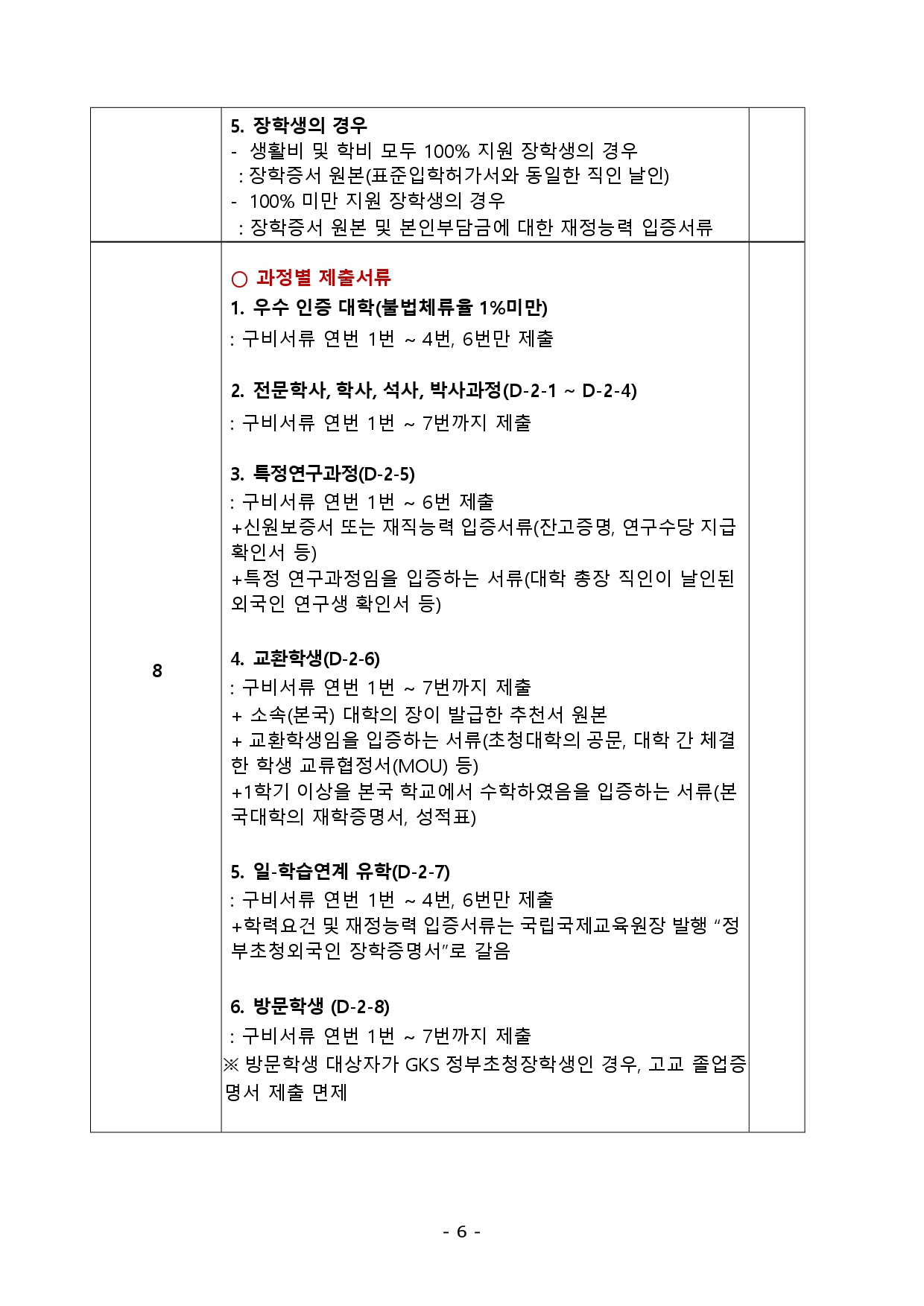 13 | 건강진단서 | - 종합검진, 에이즈, 전염성 질환, 정신질환 포함 (진단일 6개월이내) - 한국병원* 발행본만 유효 *인정범위: 1. 병원급 의료기관 2. 보건소 혹은 보건의료원 3. 「공무원채용신체검사규정」제3조에 따른 신체검사 실시 검진기관 |