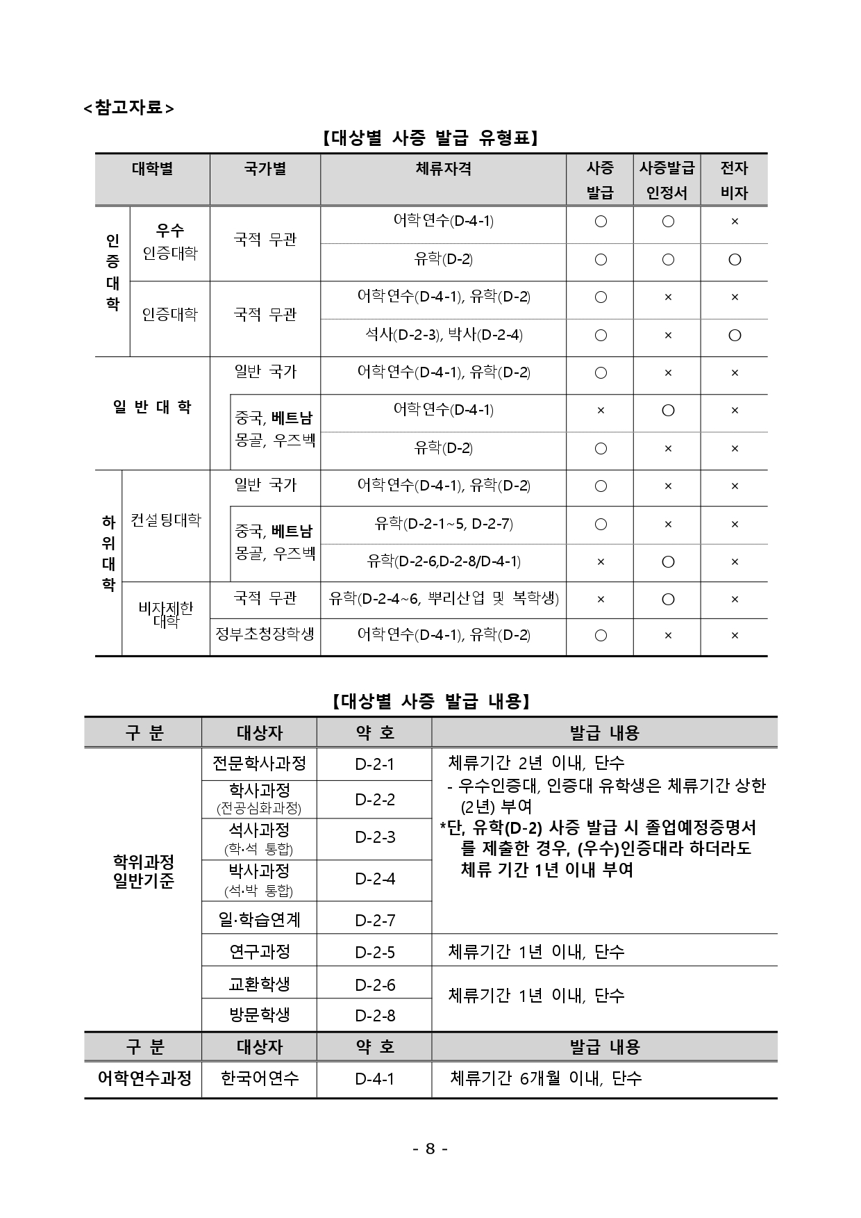 8 | 인감증명서 (원본) | 초청장,신원보증서와 동일 인감 사용, 최근3개월 |