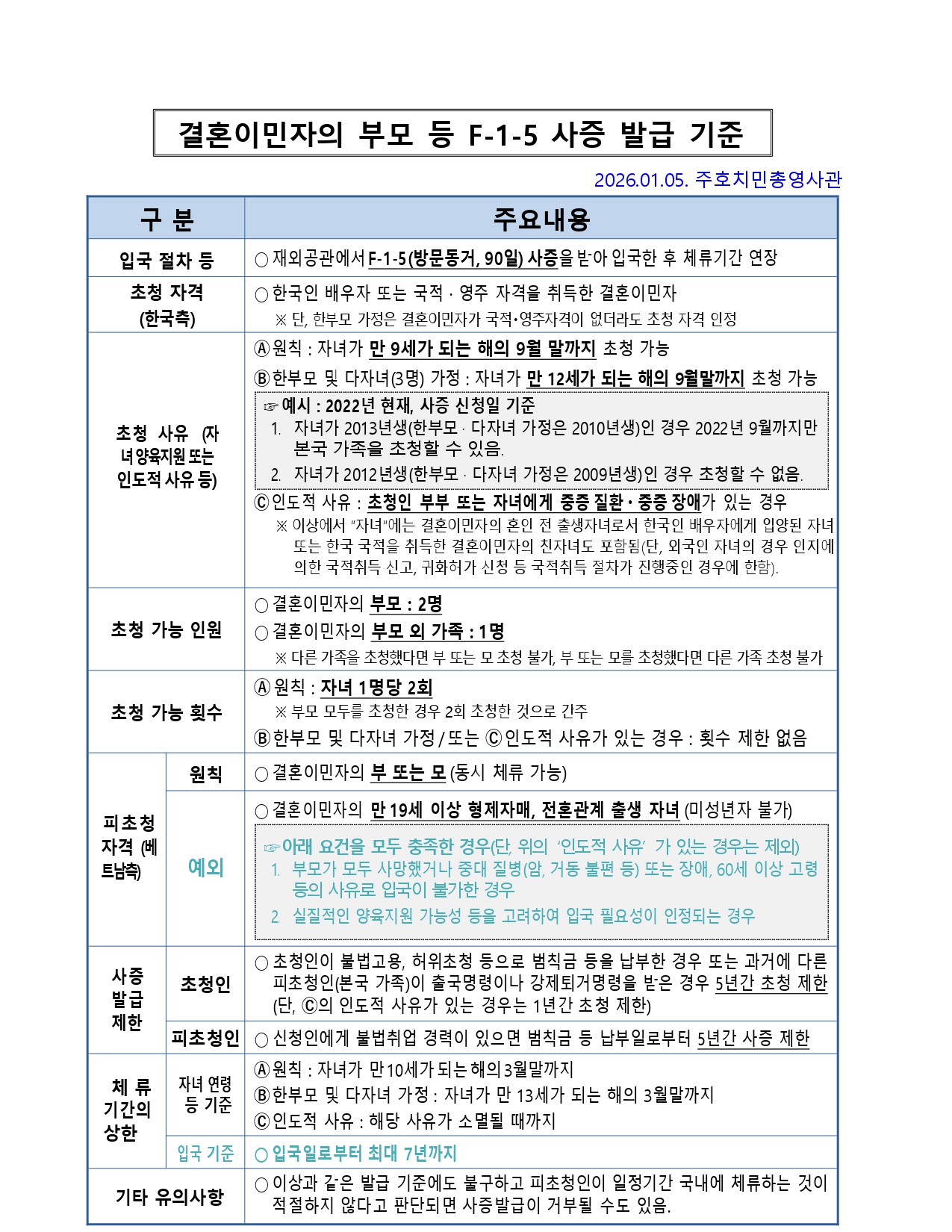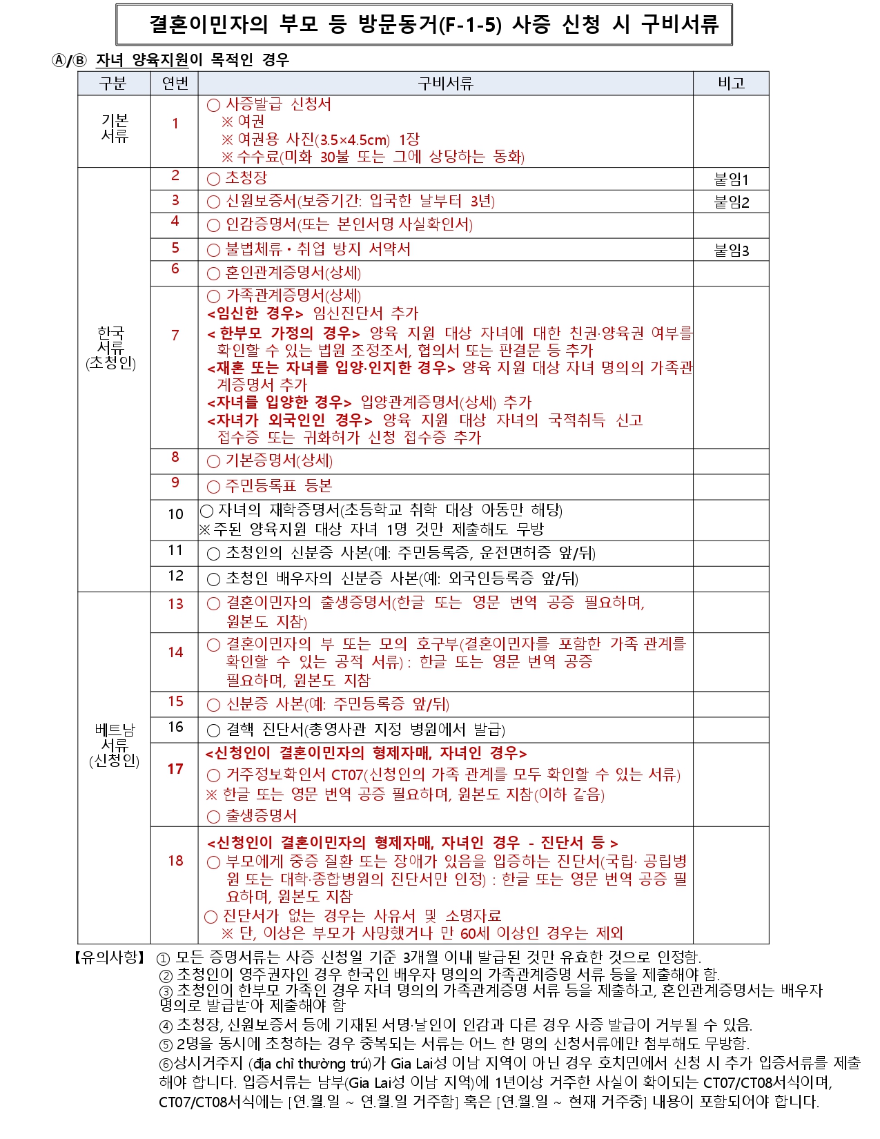 결혼이민 사증 (F-6-1) 대상자: 자녀가 있는 베트남인 배우자 |