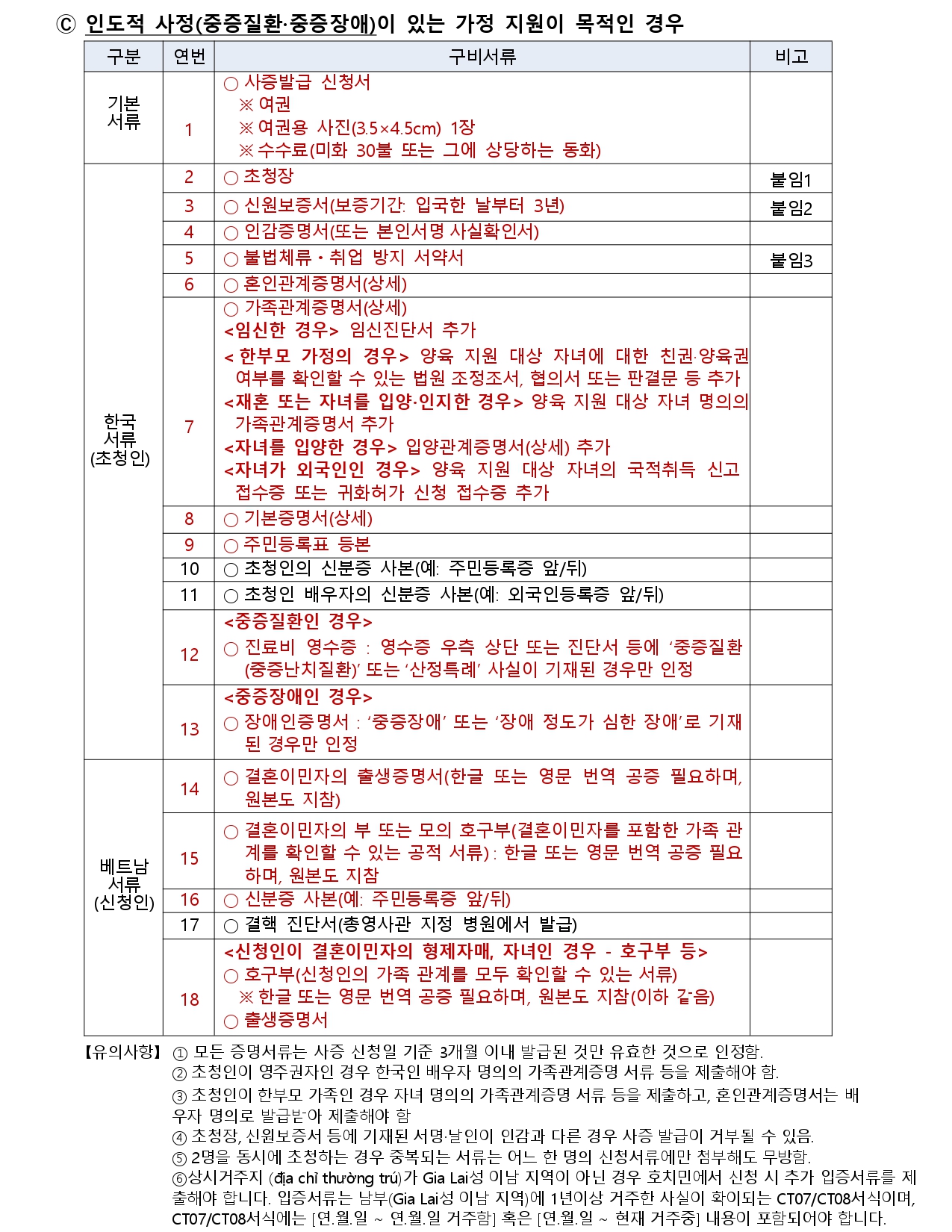 결혼이민 사증 (F-6-1) 대상: 자녀가 없는 베트남인 배우자 |