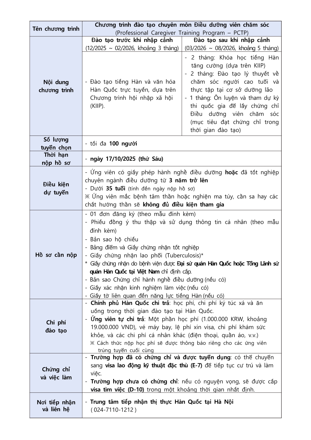 Thông báo tuyển sinh năm 2026 - Chương trình đào tạo chuyên môn đối với điều dưỡng viên chăm sóc